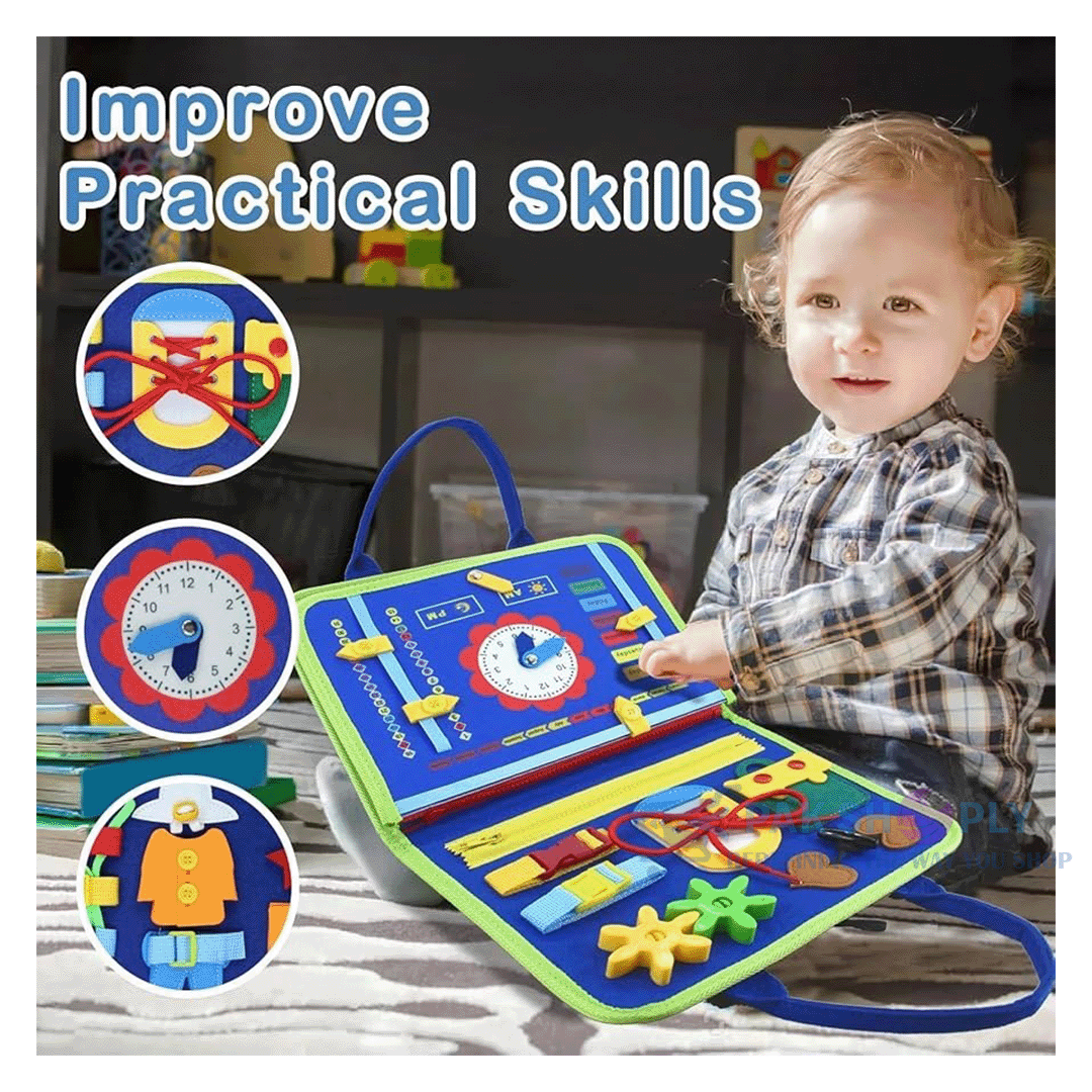The Busy Board Montessori Toys – Sensory Learning and Fine Motor Skills Busy Book for Toddlers from Pak Shoply is a thoughtfully designed educational tool inspired by the world-renowned Montessori learning method. Created to nurture independence, curiosity, and hands-on discovery, this busy board serves as an engaging learning companion for toddlers. With multiple sensory features and interactive activities, it helps young children develop fine motor skills, problem-solving abilities, and real-world practical understanding—all through play.