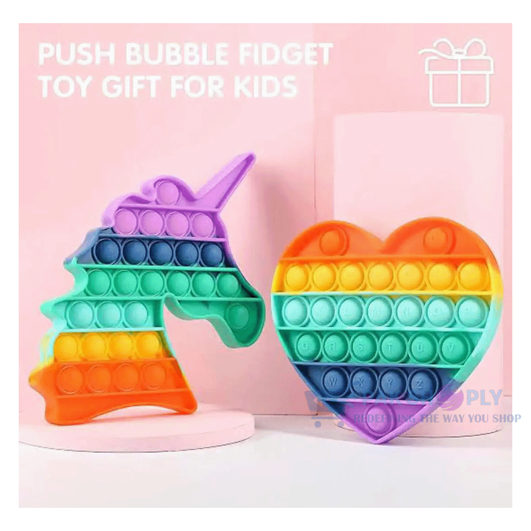 Pack of 2 Popits – Unicorn & Heart Shaped Soft Silicone Fidget Toy for Kids