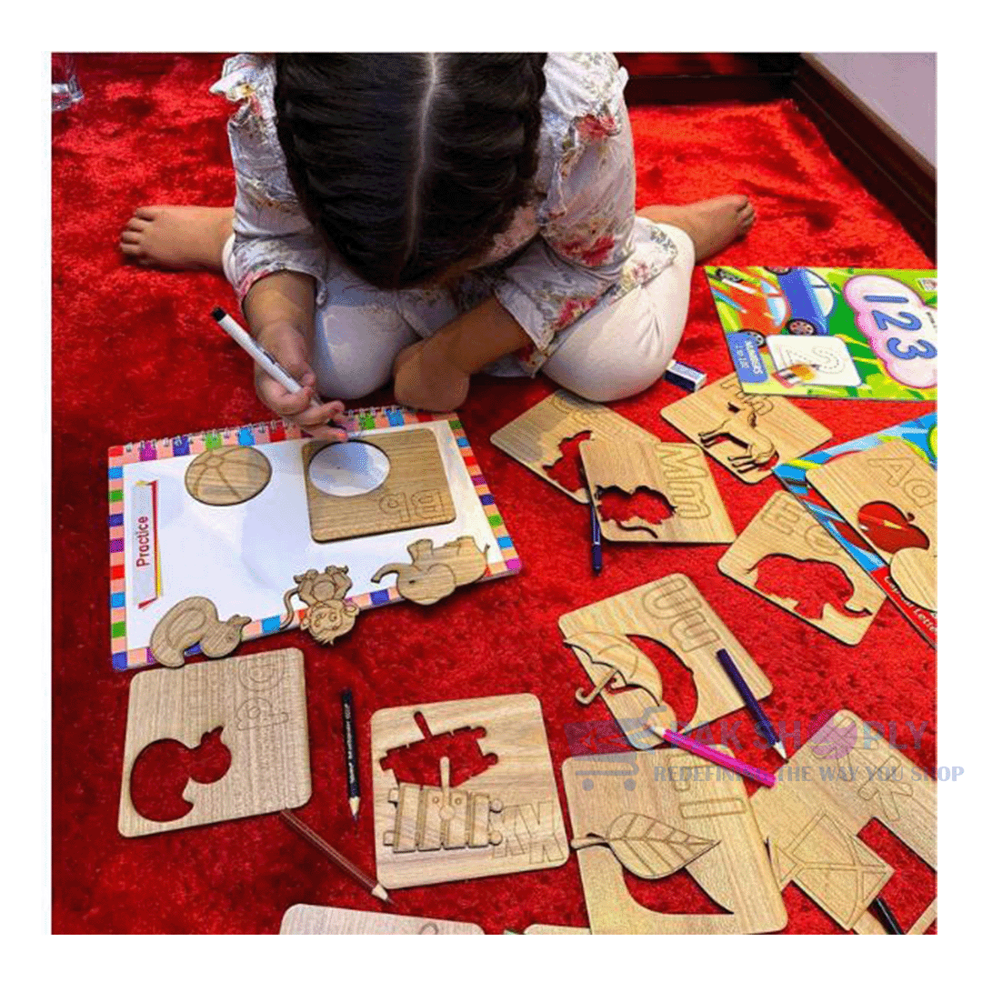 One of the biggest advantages of wooden stencils for kids is the creativity they inspire. Children not only learn to trace alphabets and numbers but are also encouraged to decorate and color their drawings. Whether it’s forming words, practicing shapes, or creating colorful patterns, these stencils turn each activity into a creative project.