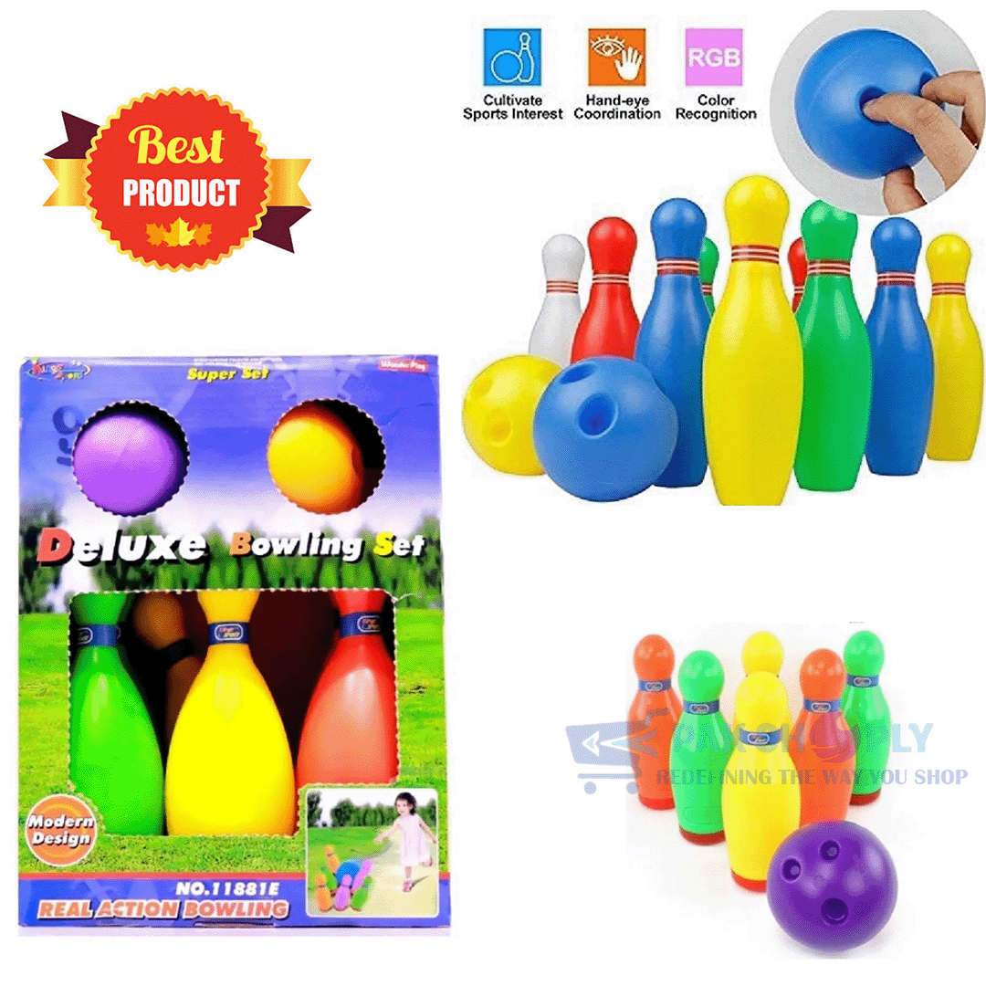 Features: 6 Plastic Pins, 2 Balls, Small & Big Sizes, Indoor & Outdoor Play, Motor Skill & Coordination Development
